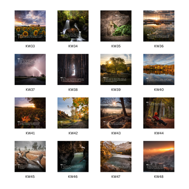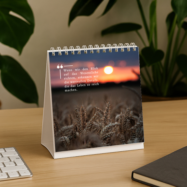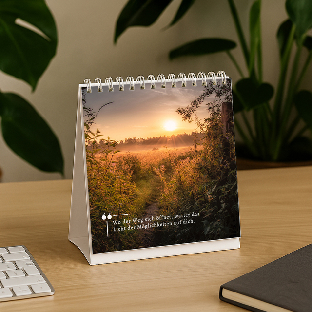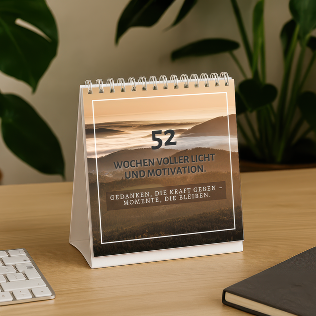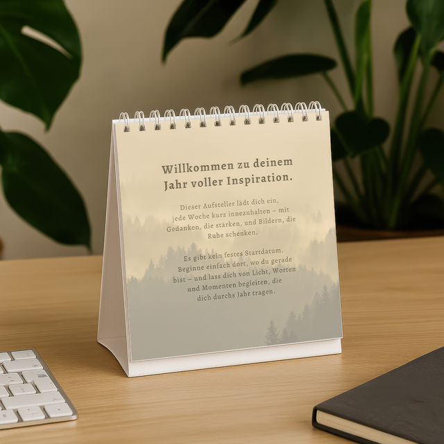 Der Wochen-Motivationsaufsteller begleitet dich das ganze Jahr über mit inspirierenden Zitaten, stimmungsvollen Naturfotografien und Worten, die Kraft geben.