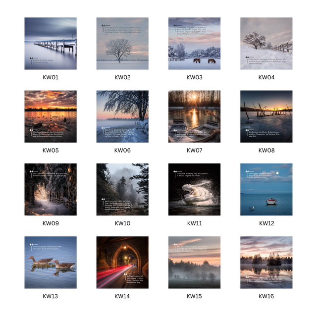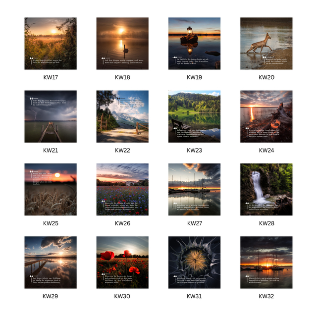 Alle Bilder sind selbst fotografiert, und jeder Motivationsspruch wurde sorgfältig auf das jeweilige Motiv abgestimmt.